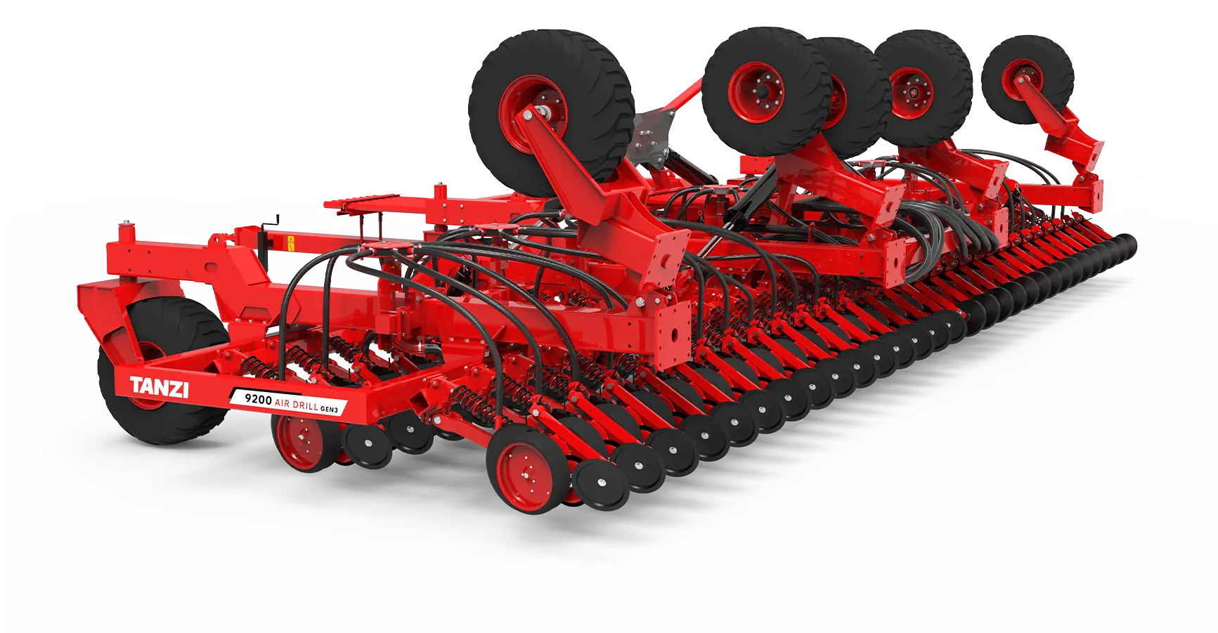 La Sembradora TANZI 9200 Air Drill GEN 3 representa la tercera generación de una de las líneas más exitosas de sembradoras de TANZI, enfocada en siembra directa de granos finos, soja a chorrillo y pasturas con abresurcos monodisco de alta durabilidad.
