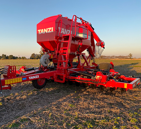 La Sembradora TANZI Tigon Air Drill es una sembradora de alto rendimiento diseñada para siembra directa de granos finos, soja a chorrillo y pasturas, equipada con abresurcos monodisco robustos que aseguran copiado uniforme del terreno y mínimo mantenimiento.